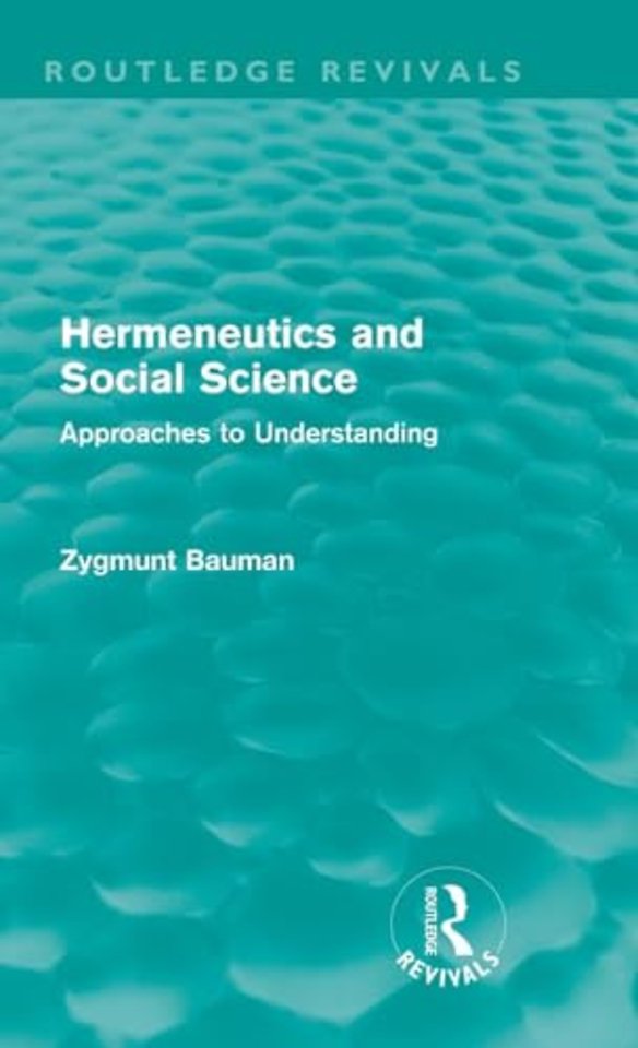 In fact its history is long and its connections plentiful, reaching beyond the boundaries of sociology itself. Yet it is in sociology that the hermeneutic tradition has attracted most interest but most misinterpretation. The debate is in full swing and there is no attempt to offer "correct" solutions - the emphasis instead is upon revealing the strengths and weaknesses of each of the main approaches. However it is Bauman's view that the theory of understanding may achieve valid results only if it treats the problem of understanding as an aspect of the ongoing process of social life.