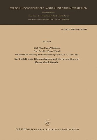 Ein Metall, welches zwei Gasräume als Diaphragma trennt, kann unter be stimmten Umständen von dem Gas durchdrungen werden, d.h. die Gasteil chen können von der Gasphase aus in das Metall eindringen, im Inneren wandern und auf der entgegengesetzten Seite des MetaJls in die zweite Gasphase eintreten. Diesen Vorgang bezeichnet man als Permeation eines Gases durch ein Metall. Häufig wird der Permeationsprozeß als Diffusi on bezeichnet, was jedoch nicht zweckmäßig ist, da nicht alle Teilvor gänge der Permeation einen Diffusionscharakter zu besitzen brauchen. Der beschriebene Gesamtvorgang setzt sich aus drei Teilprozessen - sammen: 1. der Adsorption der Gasteilchen an der Metalloberfläche und dem Ein dringen in die erste Oberflächenschicht, 2. den Vorgängen im Inneren des Metalls (Diffusion und gegebenenfalls chemische Prozesse), 3. der Desorption des Gases auf der entgegengesetzten Seite des Me talls. Gleichzeitig mit der Adsorption findet auch eine Desorption statt, so daß nur die Differenz der wirklichen Adsorption und Desorption zur Be obachtung gelangt. Entsprechendes gilt auch für die Vorgänge an der Rückseite des Metalls. Eine Glimmentladung, die an einer der Oberflächen eines Metalls brennt, kann die Adsorption beeinflussen. Die Diffusion dagegen wird, wenn überhaupt, nur indirekt beeinflußt, indem die Entladung die Temperatur des Körpers bestimmt. Dieser Faktor ist jedoch nicht spezifisch für eine Glimmentladung. Auf den Desorptionsvorgang an der Rückseite des Metalls hat die Entladung keinen Einfluß.