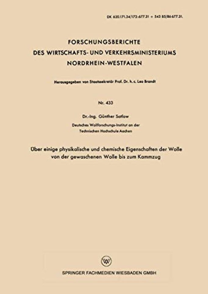 Über einige physikalische und chemische Eigenschaften der Wolle von der gewaschenen Wolle bis zum Kammzug
