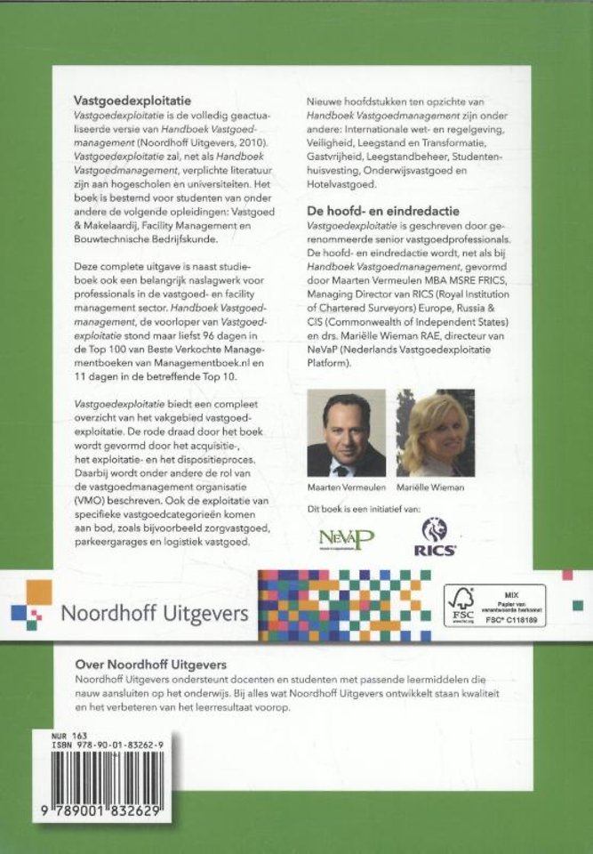 Vastgoedexploitatie is de volledig geactualiseerde versie van Handboek Vastgoedmanagement (Noordhoff Uitgevers, 2010). Deze complete uitgave is naast studieboek ook een belangrijk naslagwerk voor professionals in de vastgoed- en facility management sector.
