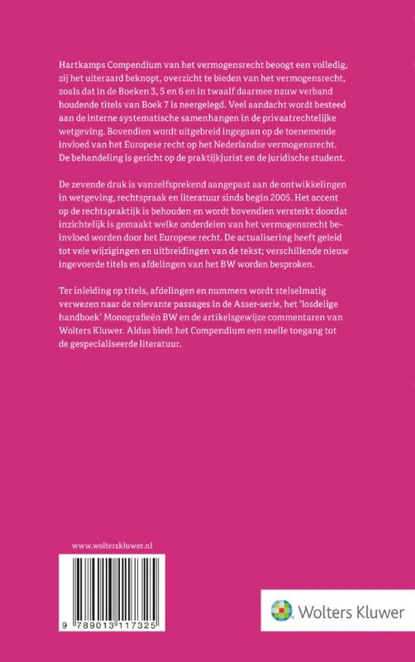 Geen enkele publicatie beschrijft het in Nederland geldende vermogensrecht op een zodanig compacte wijze en met zo veel aandacht voor de interne samenhang en Europese invloeden als dit compendium. Deze nieuwe, zevende editie bespreekt ook expliciet de invloed van het Europese recht op het Nederlandse vermogensrecht.
