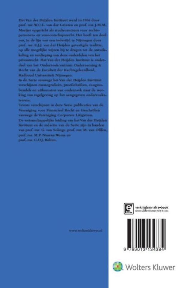 Mr. Samantha Renssen onderzocht als eerste de moeilijkheden die kleven aan de turboliquidatie als snelle wijze van ontbinding van de BV. 'De turboliquidatie van de Besloten Vennootschap' biedt iedereen die met turboliquidaties te maken heeft zowel een handig stappenplan met eisen waaraan een turboliquidatie moet voldoen, als een uitvoerig onderzoeksresultaat. U ziet de resultaten van haar onderzoek naar de wettelijke regeling en de totstandkoming ervan, naar de gevolgen ervan voor alle betrokkenen en naar de vraag of de regeling misbruik in de hand werkt.