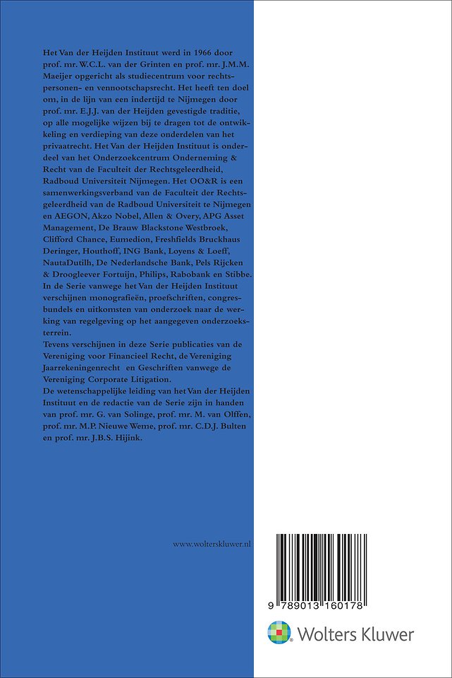Een dergelijke alomvattende studie die dit thema in al haar facetten benadert was tot op heden niet in de literatuur voorhanden. Deze titel biedt aan de ene kant ruime inzichten voor academici op dit gebied, maar levert tevens concrete antwoorden voor praktijkjuristen op ondernemingsrechtelijk vlak.