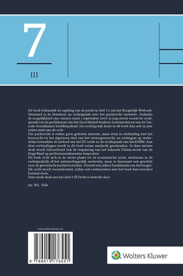 Deze uitgave geldt als hét handboek op het terrein van het pachtrecht. In Asser 7-III Pacht krijgt u inzicht in de gehele breedte en diepte van dit rechtsgebied, inclusief de verhouding van het pachtrecht tot het algemeen deel van het vermogensrecht en tot het huurrecht.