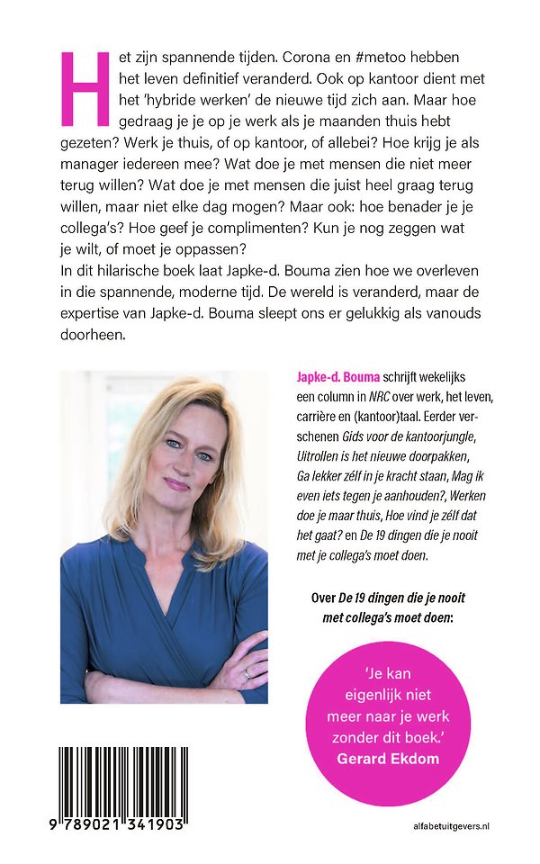 Het zijn spannende tijden. Corona en #metoo hebben het leven definitief veranderd. Ook op kantoor dient met het 'hybride werken' de nieuwe tijd zich aan. Maar hoe gedraag je je op je werk als je maanden thuis hebt gezeten? Werk je thuis, of op kantoor, of allebei? Hoe krijg je iedereen mee? Wat doe je met mensen die niet meer terug willen? Wat doe je met mensen die juist heel graag terug willen, maar niet elke dag mogen? Maar ook: hoe benader je je collega’s? Hoe geef je complimenten? Kun je nog zeggen wat je wilt, of moet je oppassen? En zo ja, hoe doe je dat dan?