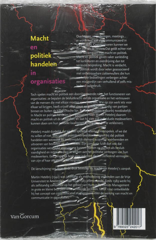 Toch spelen macht en politiek een doorslaggevende rol in het functioneren van organisaties: ze bepalen de besluitkracht van de organisatie en het vertrouwen van de mensen die met elkaar moeten samenwerken. Wie op zijn werk iets voor elkaar wil krijgen, heeft vrijwel altijd steun en goedkeuring nodig van partijen binnen en buiten de hiërarchische lijn. Politiek handelen is daarbij noodzakelijk. In dit boek haalt Martin Hetebrij daarom macht en politiek uit de taboesfeer en laat hij zien wat individuele medewerker kunnen doen om hun politieke kwaliteiten te vergroten (en te verkleinen).