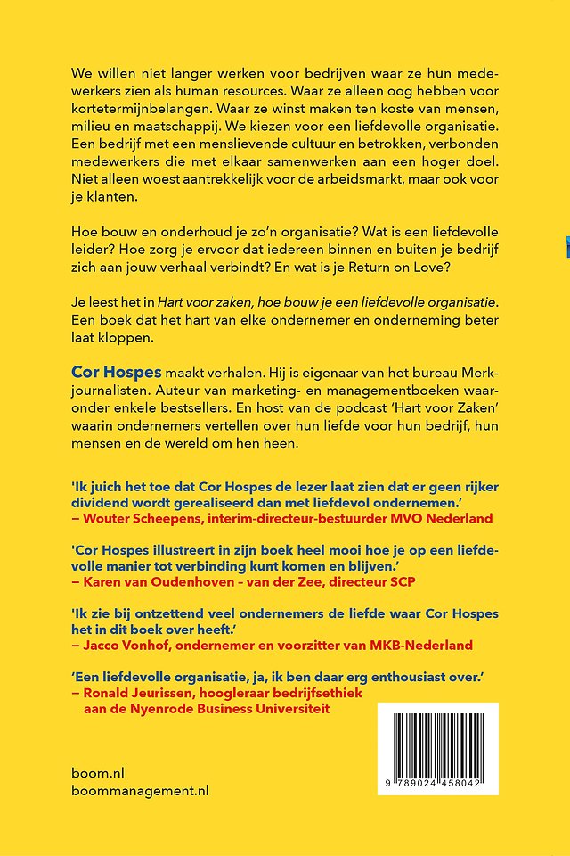Ik zie bij ontzettend veel ondernemers de liefde waar Cor Hospes het in dit boek over heeft. - Jacco Vonhof, ondernemer en voorzitter van MKB-Nederland