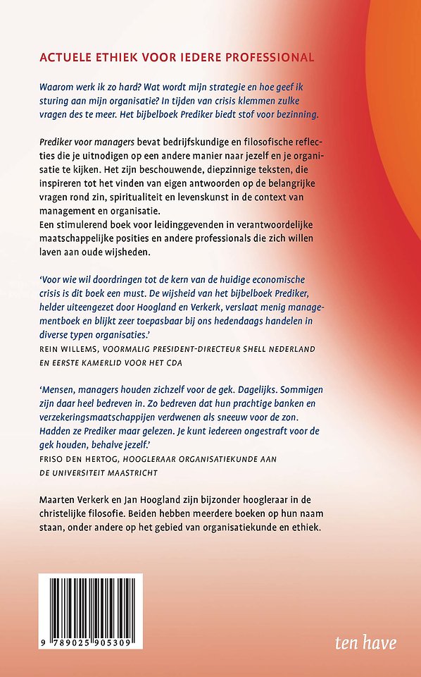 Meer over de auteursWaarom werk ik zo hard? Wat wordt mijn strategie en hoe geef ik sturing aan mijn organisatie? In tijden van crisis klemmen zulke vragen des te meer. Het bijbelboek Prediker biedt stof voor bezinning.