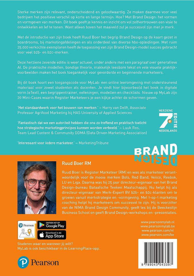Meer over Ruud BoerFollowing the publication of the Dutch edition of this book in 2002, Brand Design has become a household name in many boardrooms and educational courses. Ruud Boer’s model of Brand Design has guided over 30,000 marketers in shaping and designing brands. With the introduction of this new edition, marketing students and professionals now also benefit from a conceptual map of Brand Design in English!