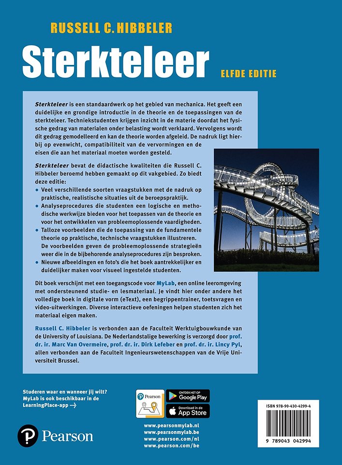 In Sterkteleer worden de principes van de sterkteleer toegepast op situaties die aanvankelijk eenvoudig zijn en vervolgens steeds ingewikkelder worden. Dit geeft studenten een duidelijke en grondige inleiding op de theorie en toepassingen in het vakgebied. Ze krijgen inzicht in de materie doordat het fysische gedrag van materialen onder belasting wordt verklaard aan de hand van modellen en theorieën.