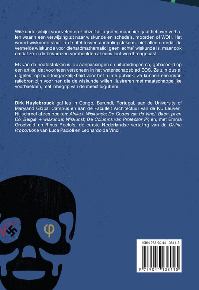 Wiskunde schijnt voor velen op zichzelf al luguber, maar hier gaat het over verhalen waarin een verwijzing zit naar wiskunde en schedels, moorden of WOII. Het woord wiskunde staat in de titel tussen aanhalingstekens, niet alleen omdat de vermelde wiskunde voor diehardmathematici geen ‘echte’ wiskunde is, maar ook omdat ze in de besproken voorbeelden al eens fout wordt toegepast.