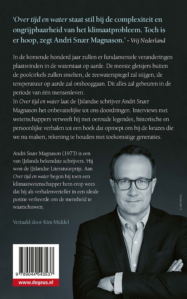 In 'Over tijd en water' laat de IJslandse schrijver Andri Snær Magnason het onbevattelijke tot ons doordringen. Interviews met wetenschappers verweeft hij met oeroude legendes, historische en persoonlijke verhalen tot een boek dat oproept om bij de keuzes die we nu maken rekening te houden met toekomstige generaties.