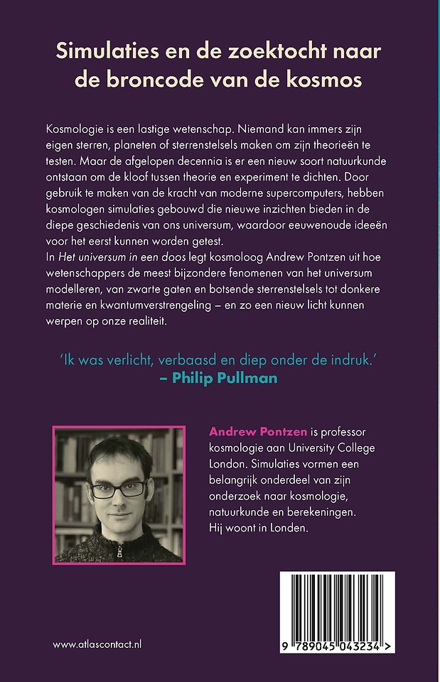 In Het universum in een doos legt kosmoloog Andrew Pontzen uit hoe wetenschappers de meest bijzondere fenomenen van het universum modelleren, van zwarte gaten en botsende sterrenstelsels tot donkere materie en kwantumverstrengeling – en zo een nieuw licht kunnen werpen op onze realiteit.