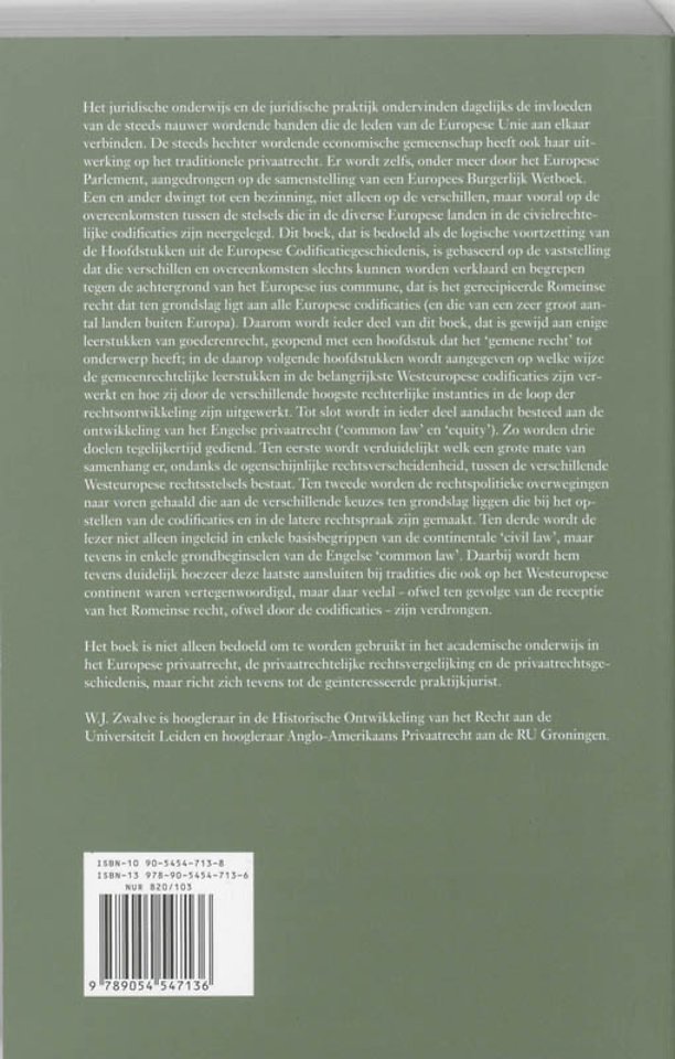 Een en ander dwingt tot een bezinning, niet alleen op de verschillen, maar vooral op de overeenkomsten tussen de stelsels die in de diverse Europese landen in de civielrechtelijke codificaties zijn neergelegd. Dit boek, dat bedoeld is als de logische voortzetting van de 'Hoofdstukken uit de Europese codificatiegeschiedenis', is gebaseerd op de vaststelling dat die verschillen en overeenkomsten slechts kunnen worden verklaard en begrepen tegen de achtergrond van het Europese ius commune, dat is het gerecipieerde Romeinse recht dat ten grondslag ligt aan alle Europese codificaties (en die van een zeer groot aantal landen buiten Europa).