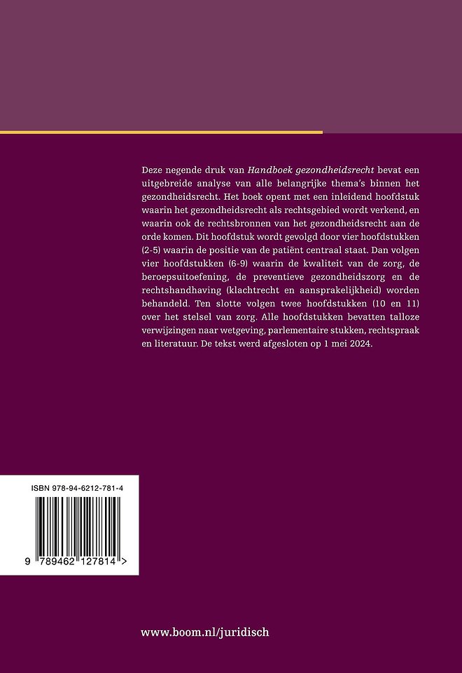 Deze negende druk van Handboek gezondheidsrecht bevat een uitgebreide analyse van alle belangrijke thema’s binnen het gezondheidsrecht. Het boek opent met een inleidend hoofdstuk waarin het gezondheidsrecht als rechtsgebied wordt verkend, en waarin ook de rechtsbronnen van het gezondheidsrecht aan de orde komen.