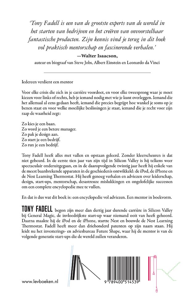 In meer dan 30 jaar in Silicon Valley heeft Tony Fadell genoeg geleerd over leiderschap, design, startups, Apple, Google, besluitvorming, mentorschap, verwoestende mislukkingen en ongelooflijk succes om een encyclopedie te vullen.