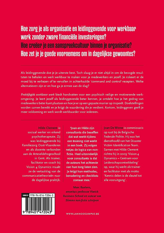 Leidinggeven aan mensen is moeilijk en soms heel vermoeiend. Ondanks goeie bedoelingen slaag je er als leidinggevende niet altijd in het werk werkbaar te maken voor je medewerkers en voor jezelf. De aloude 'command and control'-recepten zijn achterhaald en worden ook niet meer aanvaard. Hoe hiermee om te gaan, lees je in dit boek.