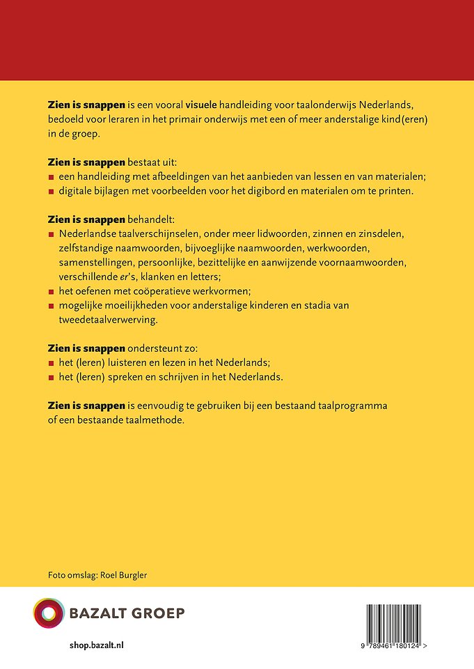 Zien is snappen is een vooral visuele handleiding voor taalonderwijs door leerkrachten in het primair onderwijs met een of meer anderstalige kinderen in de klas.