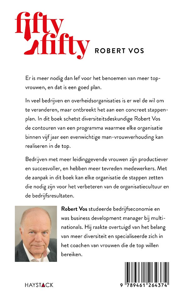 Robert Vos is een management trainer, coach & mentor die met passie ambitieuze en competente vrouwen helpt om de top in hun organisaties te bereiken, zodat hun organisaties én onze samenleving daar wezenlijk beter van worden. Hij gelooft sterk in diversiteit en inclusie, in samenwerking tussen mensen en in de onverbrekelijke samenhang tussen vrouw en man. Hij is de auteur van Fiftyfifty.