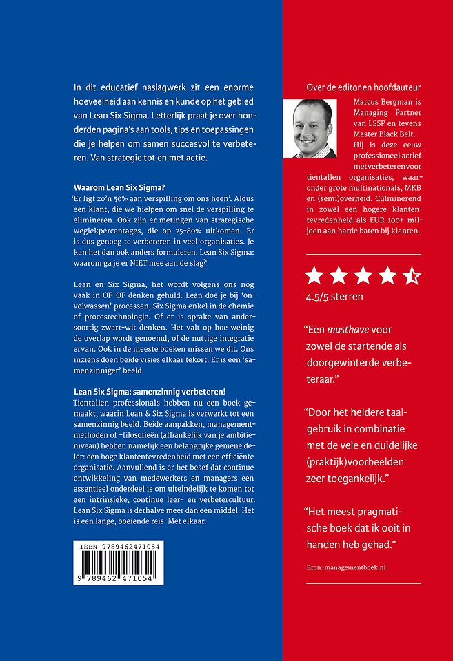 Tientallen professionals hebben nu een boek gemaakt, waarin Lean & Six Sigma is verwerkt tot een samen zinnig beeld. Beide aanpakken, managementmethoden of -filosofieën (afhankelijk van je ambitieniveau) hebben namelijk een belangrijke gemene deler: een hoge klantentevredenheid met een efficiënte organisatie. Aanvullend is er het besef dat continue ontwikkeling van medewerkers en managers een essentieel onderdeel is om uiteindelijk te komen tot een intrinsieke, continue leer- en verbeter cultuur. Lean Six Sigma is derhalve meer dan een middel. Het is een lange, boeiende reis. Met elkaar.