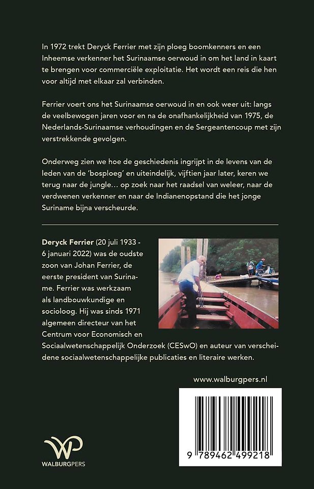 Ferrier voert ons het Surinaamse oerwoud in en ook weer uit: langs de veelbewogen jaren voor en na de onafhankelijkheid van 1975, de Nederlands-Surinaamse verhoudingen en de Sergeantencoup met zijn verstrekkende gevolgen.