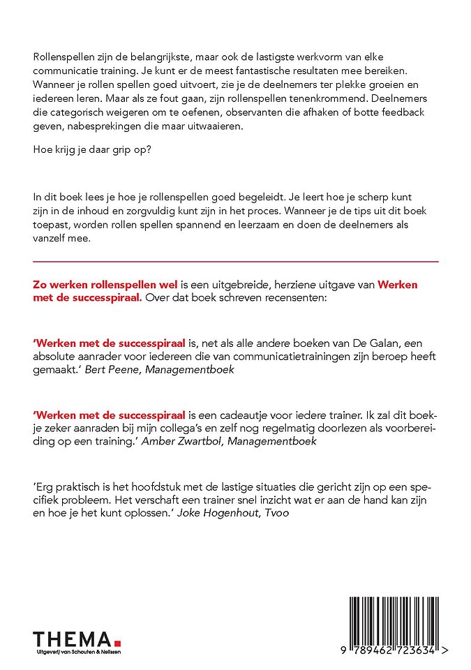 'Zo werken rollenspellen echt!' leert je hoe je rollenspelen zo kunt voorbereiden en begeleiden dat deelnemers er maximaal profijt van trekken. Dat ze dingen leren waarvan ze nooit gedacht hadden dat ze die in zich hadden. Dit boek helpt trainers om: * beter te worden in hun vak door ook de kunst van rollenspelen te leren * cases te trainen en daarmee de borging naar de praktijk van de deelnemer te garanderen * rollenspelen beter voor te bereiden en te begeleiden.