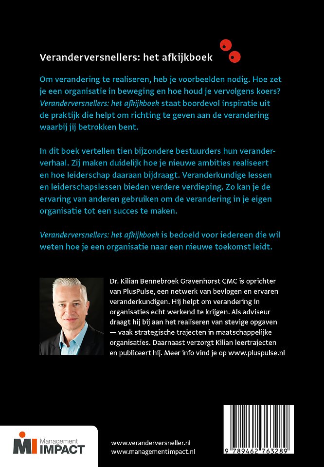Meer over Kilian Bennebroek GravenhorstOm verandering te realiseren, heb je voorbeelden nodig. Hoe zet je een organisatie in beweging en hoe houd je vervolgens koers? 'Veranderversnellers: het afkijkboek' staat boordevol inspiratie uit de praktijk die helpt om richting te geven aan de verandering waarbij jij betrokken bent.