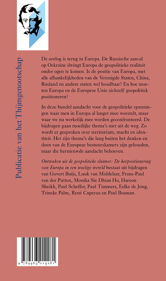 Ontwaken uit de geopolitieke sluimer: De herpositionering van Europa in een woelige wereld bestaat uit bijdragen van Govert Buijs, Luuk van Middelaar, Frans-Paul van der Putten, Monika Sie Dhian Ho, Haroon Sheikh, Paul Scheffer, Paul Timmers, Eelke de Jong, René Cuperus, Trineke Palm, en Paul Bosman.