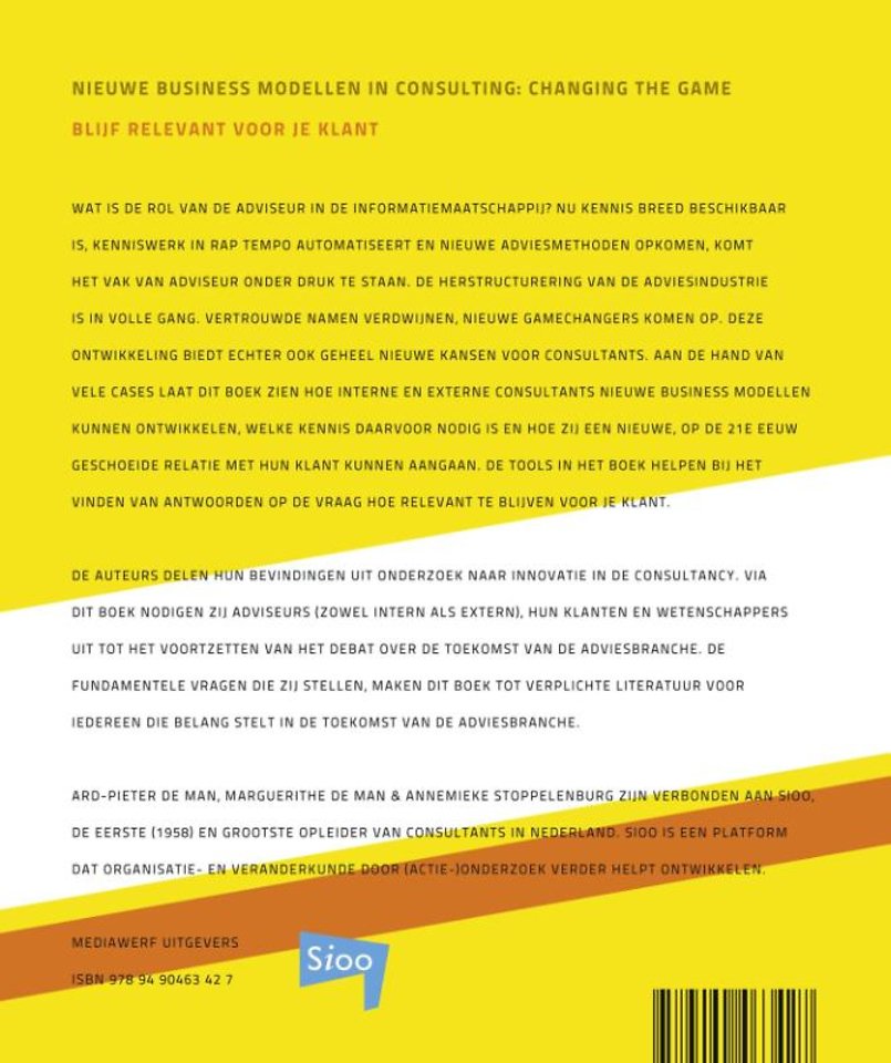 Meer over de auteursWat is de rol van de adviseur in de informatiemaatschappij? Nu kennis breed beschikbaar is, kenniswerk in rap tempo automatiseert en nieuwe adviesmethoden opkomen, komt het vak van adviseur onder druk te staan. De herstructurering van de adviesindustrie is in volle gang. Vertrouwde namen verdwijnen, nieuwe gamechangers komen op. Deze ontwikkeling biedt echter ook geheel nieuwe kansen voor consultants. Aan de hand van vele cases laat dit boek zien hoe interne en externe consultants nieuwe business modellen kunnen ontwikkelen, welke kennis daarvoor nodig is en hoe zij een nieuwe, op de 21e eeuw geschoeide relatie met hun klant kunnen aangaan.