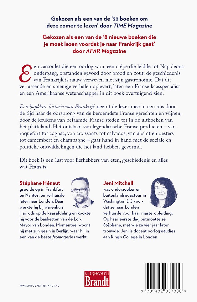 Een cassoulet die een oorlog won, een crêpe die leidde tot Napoleons ondergang, opstanden gevoed door brood en zout: de geschiedenis van Frankrijk is nauw verweven met zijn gastronomie. Dat dit verrassende en smeuïge verhalen oplevert, laten een Franse kaasspecialist en een Amerikaanse wetenschapper in dit boek overtuigend zien.